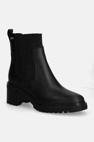 Tommy Hilfiger sztyblety zamszowe FLAG MID HEEL SUEDE CHELSEA damskie kolor czarny na słupku FW0FW08429