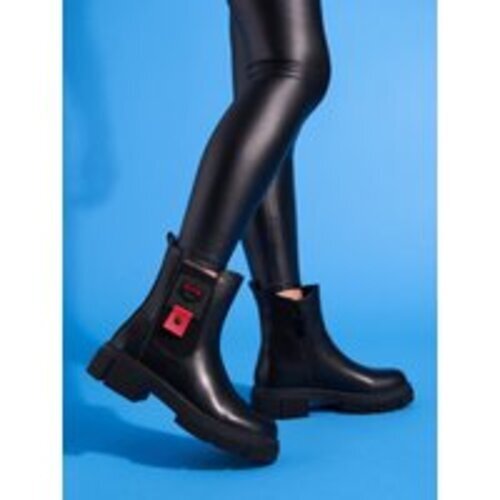 Czarne botki sztyblety damskie damskie botki na koturnie na platformie
