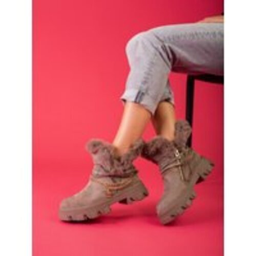 Beżowe botki zimowe botki na koturnie damskie z zamszu ekologicznego beżowe