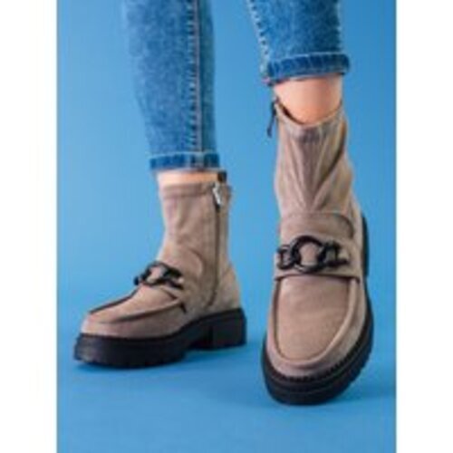 Zamszowe botki damskie z elastyczną cholewką damskie botki na koturnie beżowe