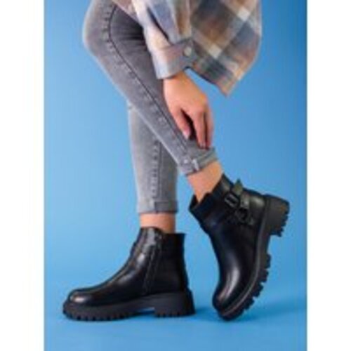 Traperki na platformie damskie S.Barski czarne zimowe botki na koturnie