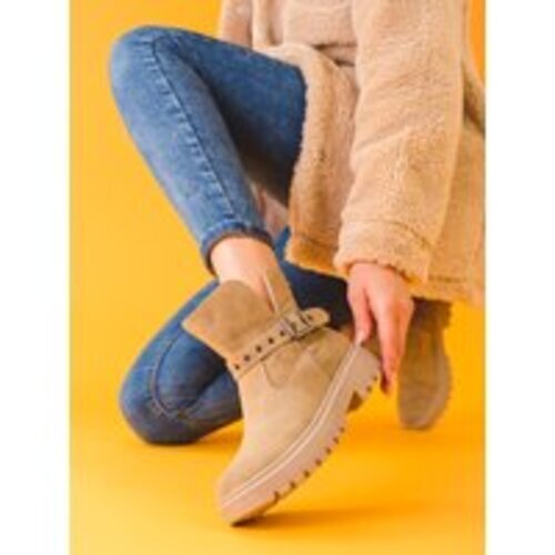 Beżowe botki damskie botki damskie koturn z zamszu ekologicznego