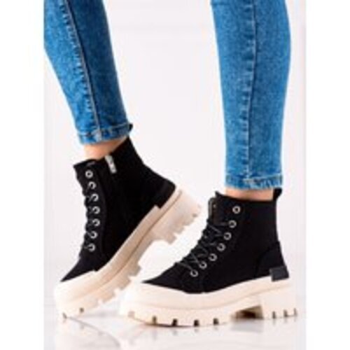 Sportowe botki damskie botki koturny czarne