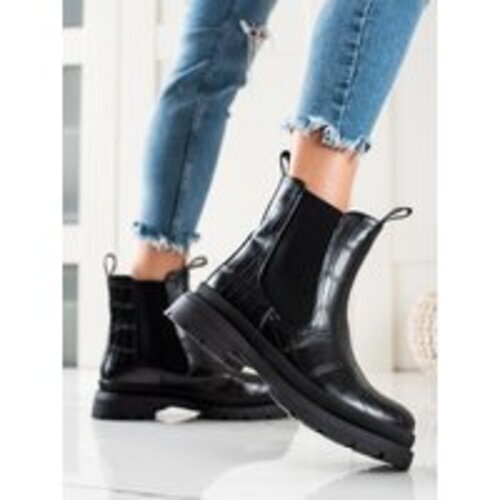 Traperki na botki z koturnem platformie damskie S.Barski czarne