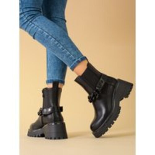Sztyblety damskie z łańcuszkiem botki damskie koturn czarne