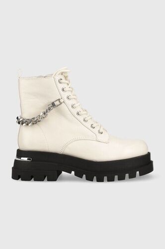 Karl Lagerfeld sztyblety skórzane BIKER II damskie kolor biały białe botki na płaskim obcasie