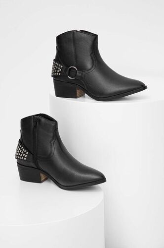 Answear Lab kowbojki damskie kolor czarny na słupku lekko ocieplone botki krótkie czarne