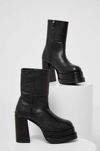 Pinko workery skórzane Mia damskie kolor czarny na platformie SD0141 P001 czarne botki na jesien Z99