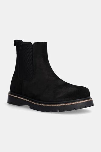 Birkenstock sztyblety zamszowe Highwood Slip On botki krótkie czarne Mid damskie kolor czarny na płaskim obcasie 1028187