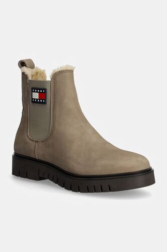 Tommy Jeans sztyblety nubukowe TJW NUBUCK CHELSEA WL kolor beżowy na płaskim obcasie ocieplone EN0EN02688