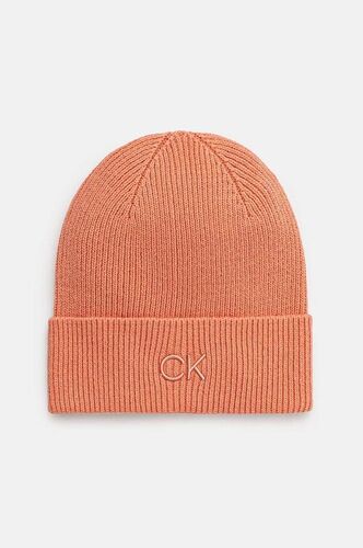 Calvin Klein czapka z domieszką wełny kolor pomarańczowy z cienkiej dzianiny K60K612590