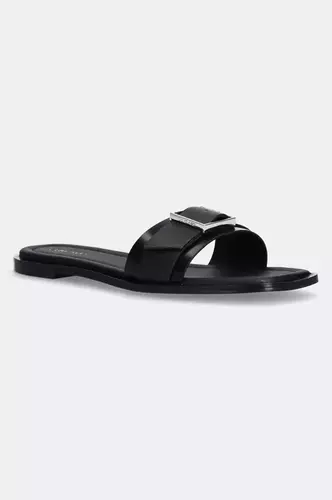 Calvin Klein klapki skórzane FLAT SLIDE W/BUCKLE - LTH damskie kolor czarny HW0HW02490