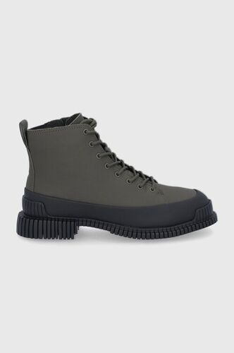 Camper botki skórzane Brutus damskie kolor zielony na płaskim obcasie K400325-048