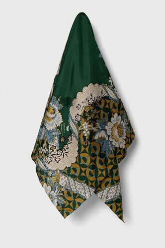 Answear Lab apaszka chusty na zimę jedwabna kolor zielony wzorzysta