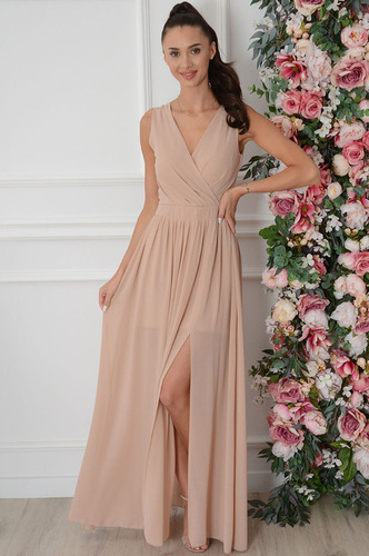 Sukienka maxi szyfonowa pudrowy beż Lukrecja Rozmiar: M cocomoda
