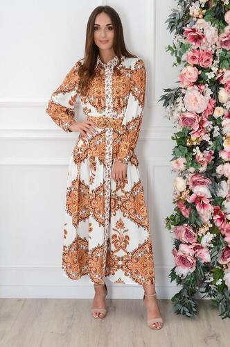 Sukienka maxi boho cocomoda na guziki w etno wzory biała Darie Rozmiar: S