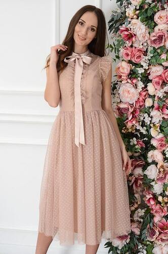 Sukienka midi z tiulu cocomoda i żabotem brudny róż Seisa Rozmiar: S