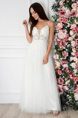 Sukienka maxi wyszywana cekinami cocomoda biała Izyda Rozmiar: S