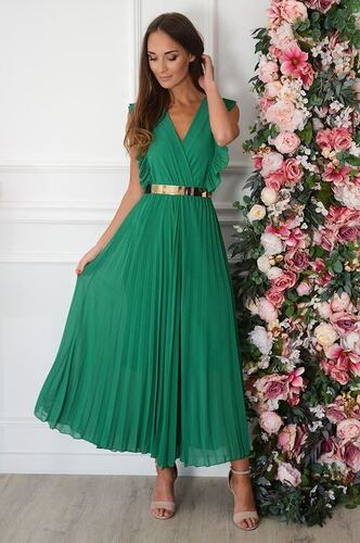 Sukienka maxi plisowana z cocomoda falbankami zielona Verda Rozmiar: UNI