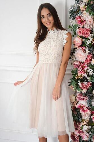 Sukienka midi z koronki i tiulu biało-beżowa Diori cocomoda Rozmiar: L