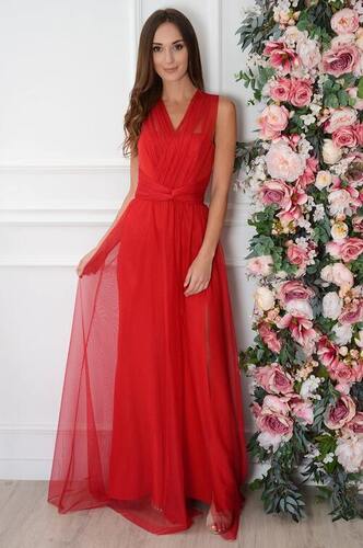 Sukienka maxi z tiulu z sukienki cocomoda wiązaniem czerwona Angelica Rozmiar: L
