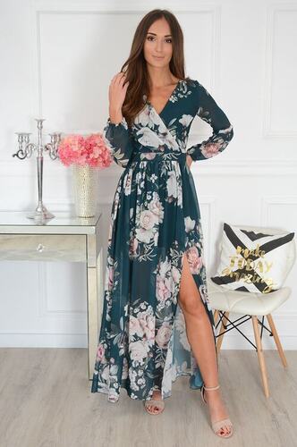 Sukienka maxi w kwiaty długi rękaw zieleń sukienki cocomoda Lukrecja Rozmiar: L