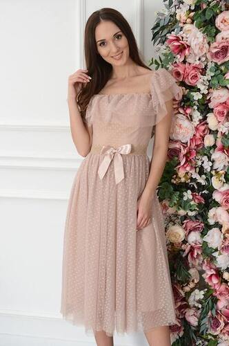 Sukienka midi z koronki i tiulu brudny róż Sandy Rozmiar: L sukienki cocomoda
