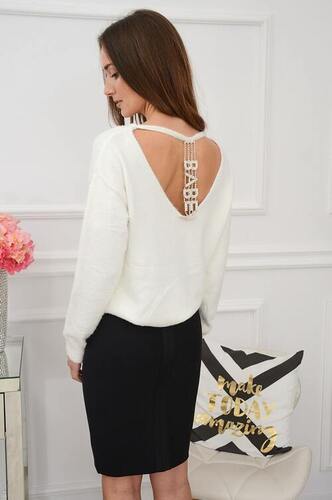 Miękki sweter dekolt z aplikacją kremowy Babe Rozmiar: UNI