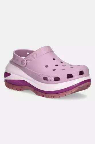 Crocs klapki Mega crocs klapki damskie Crush Tripe Strap damskie kolor różowy na platformie 209842.6ZW