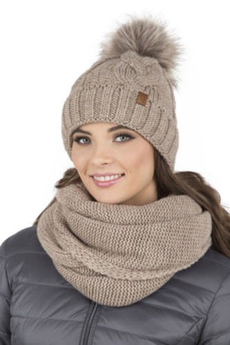 Vivisence 7014Kmpl Komplet czapka+komin, beżowy