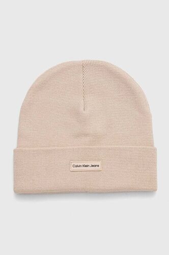 Calvin Klein czapka z domieszką wełny kolor beżowy K60K612596