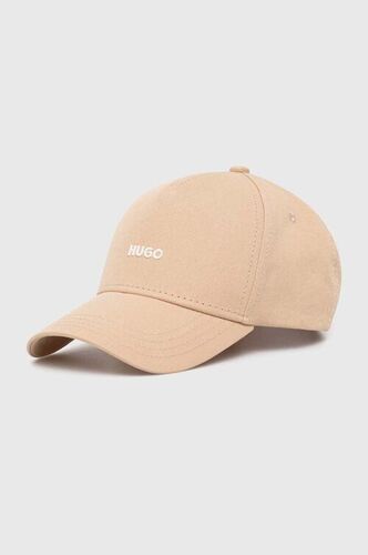 HUGO czapka z daszkiem bawełniana kolor beżowy z aplikacją 50519255