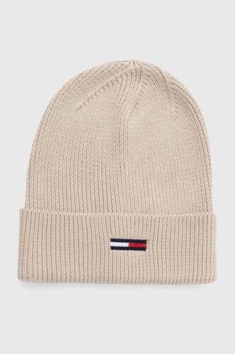 Tommy Jeans czapka kolor beżowy z grubej dzianiny AW0AW16785