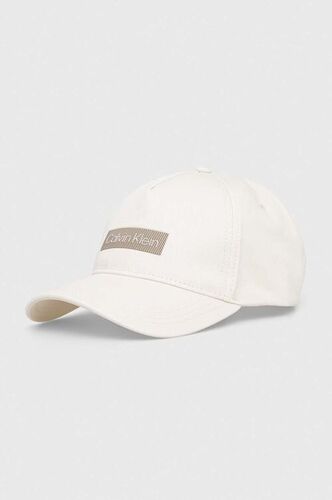 Calvin Klein modne czapki meskie zimowe czapka z daszkiem bawełniana kolor biały z aplikacją