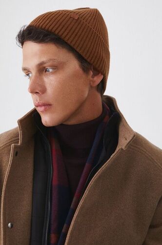 Barbour czapka kolor brązowy z grubej dzianiny MHA0863