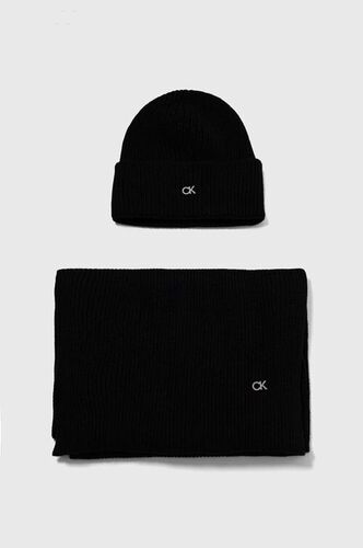 Calvin Klein czapka zimowa damska czapka z domieszką wełny kolor beżowy