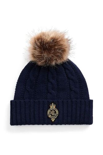 Lauren Ralph modne czapki damskie Lauren czapka z domieszką wełny kolor granatowy z grubej dzianiny 454960081