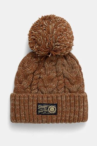 Superdry czapka z domieszką czarna damska czapka zimowa wełny kolor brązowy z grubej dzianiny Y9010189A-B9T