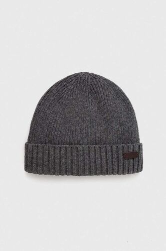 Barbour czapka wełniana kolor szary czapka zimowa czarna męska z grubej dzianiny wełniana