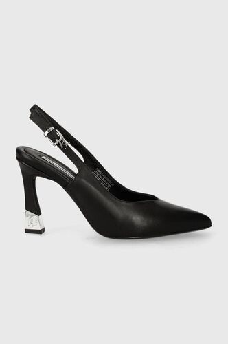 Karl Lagerfeld czółenka skórzane SOIREE PLATFORM kolor czarny na słupku z odkrytą piętą czarne czólenka KL93114