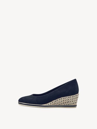 Obuwie na koturnie kobaltowe czółenka niebieski - 38