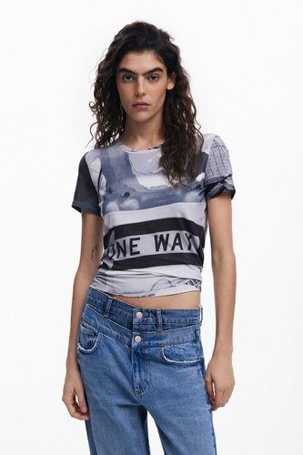 Koszulka cropped fantazyjny nadruk desigual sukienki outlet