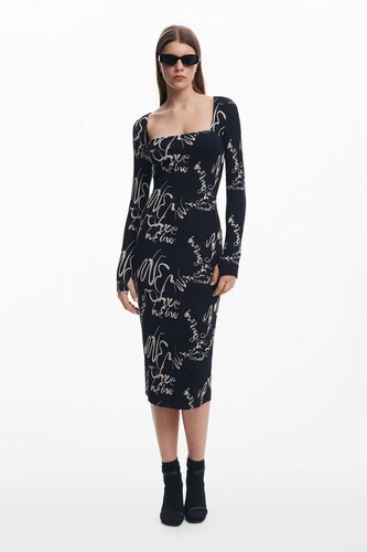 Sukienka z desigual sukienki kwadratowym dekoltem Lettering