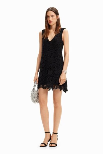 Krótka sukienka desigual sukienki z szydełkowym wzorem