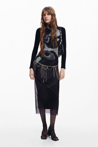 Asymetryczna czarna sukienka María desigual sukienka maxi Escoté