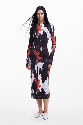 Długa sukienka z prążkowanej desigual sukienka dzianiny z efektem marmurkowym