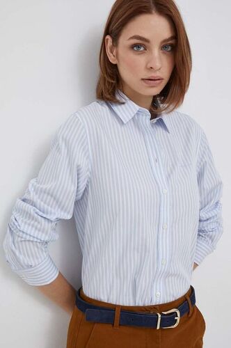 Gant koszula bawełniana damska kolor niebieski regular z kołnierzykiem klasycznym