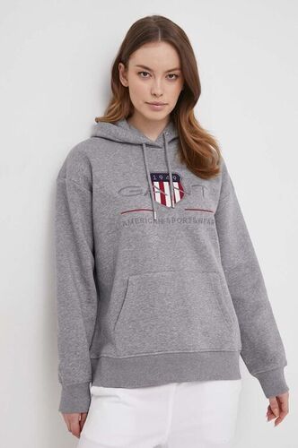 Gant bluza damska kolor szary z kapturem z aplikacją