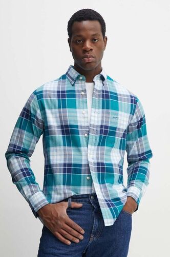 Gant koszula bawełniana męska kolor niebieski regular z kołnierzykiem button-down 3240148