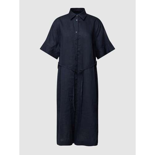 Sukienka koszulowa z lnu z wiązanym paskiem